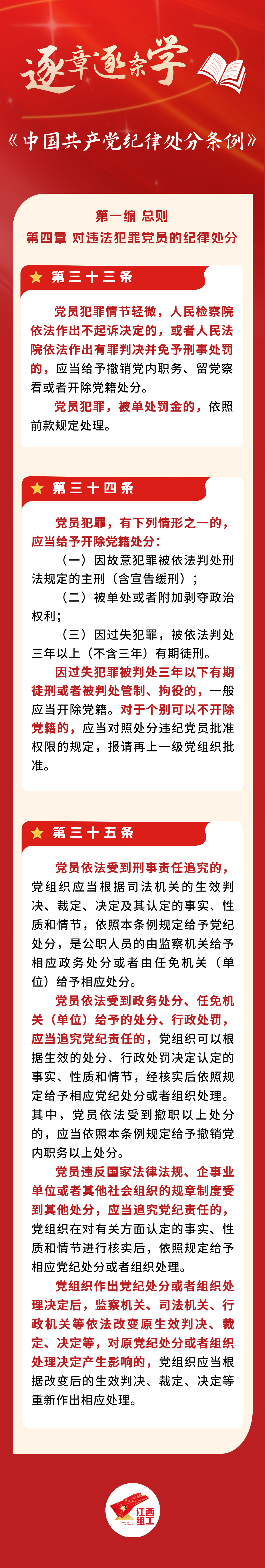 逐章逐條學《條例》⑦| 對違法犯罪黨員的紀律處分