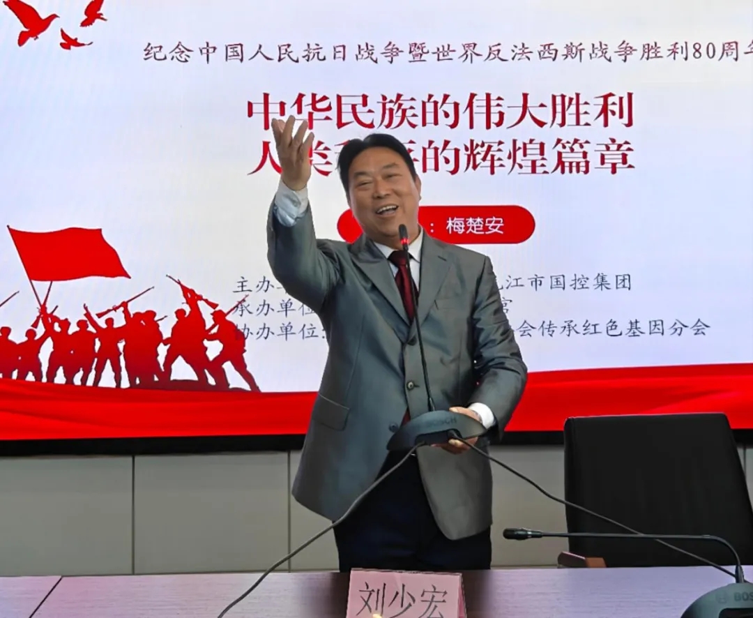 梅教授以《紀(jì)念中國人民抗日戰(zhàn)爭暨世界反法西斯戰(zhàn)爭勝利80周年 中華民族的偉大勝利 世界和平的輝煌篇章》為主題,為全體黨員帶來了一場震撼人心的精彩講座。他憑借豐富詳實的史料、生動鮮活的講述,帶領(lǐng)大家穿越時空,重溫了那段波瀾壯闊的抗戰(zhàn)歲月。通過對關(guān)鍵歷史事件的深度剖析,深刻展現(xiàn)了中華民族在抗戰(zhàn)中展現(xiàn)出的頑強不屈精神,以及抗戰(zhàn)勝利對世界和平進程的深遠影響,讓黨員們深受觸動,進一步堅定了理想信念,從歷史中汲取到奮勇前行的強大動力。另外,還邀請了劉少宏老師進行激情澎湃的紅歌獻唱。